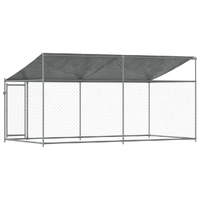 Keep your furry friends in a safe and comfortable space with this dog cage! Versatile use: The versatile dog kennel features multiple uses: playing, exercising, training, or simply keeping your dog safe. It will be the perfect play paradise for your animals!Durable construction: Thanks to the sturdy and heavy-duty galvanised steel construction, the dog pen is durable and built to last.Mesh design: The mesh design of the outdoor dog kennel helps prevent mischief and unexpected accidents while enabling ventilation.Practical roof: The roof of the metal dog crate is made of water-resistant fabric to provide your dog with shade and protection from light rain.Convenient access: The outside dog cage features a lockable door, making it easy to get in and out.