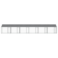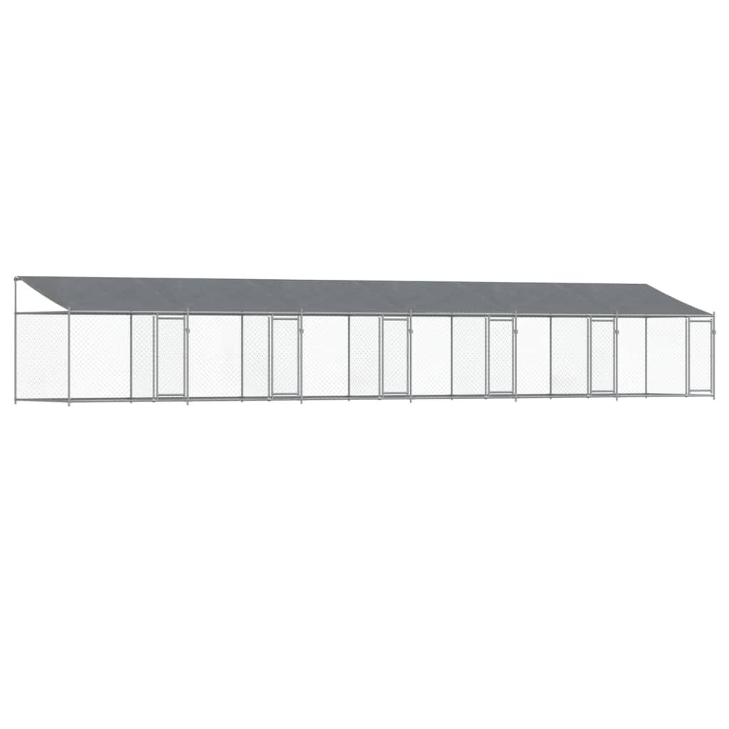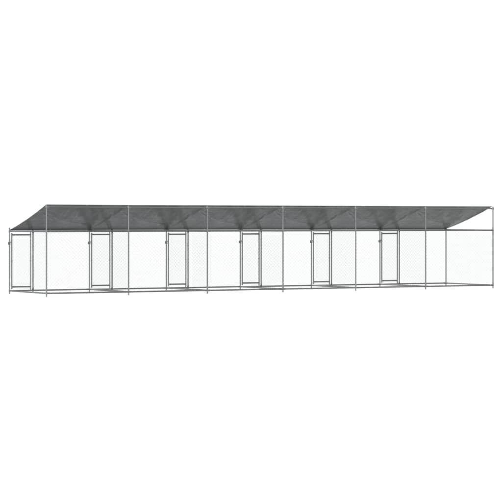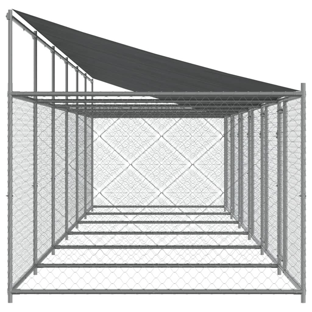 Keep your furry friends in a safe and comfortable space with this dog cage! Versatile use: The versatile dog kennel features multiple uses: playing, exercising, training, or simply keeping your dog safe. It will be the perfect play paradise for your animals!Durable construction: Thanks to the sturdy and heavy-duty galvanised steel construction, the dog pen is durable and built to last.Mesh design: The mesh design of the outdoor dog kennel helps prevent mischief and unexpected accidents while enabling ventilation.Practical roof: The roof of the metal dog crate is made of water-resistant fabric to provide your dog with shade and protection from light rain.Convenient access: The outside dog cage features lockable doors, making it easy to get in and out.