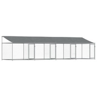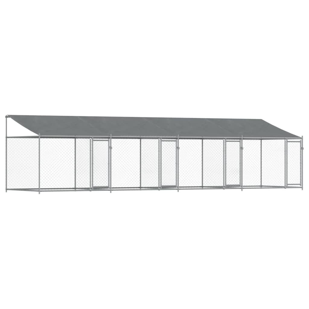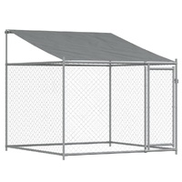 Keep your furry friends in a safe and comfortable space with this dog cage! Versatile use: The versatile dog kennel features multiple uses: playing, exercising, training, or simply keeping your dog safe. It will be the perfect play paradise for your animals!Durable construction: Thanks to the sturdy and heavy-duty galvanised steel construction, the dog pen is durable and built to last.Mesh design: The mesh design of the outdoor dog kennel helps prevent mischief and unexpected accidents while enabling ventilation.Practical roof: The roof of the metal dog crate is made of water-resistant fabric to provide your dog with shade and protection from light rain.Convenient access: The outside dog cage features lockable doors, making it easy to get in and out.
