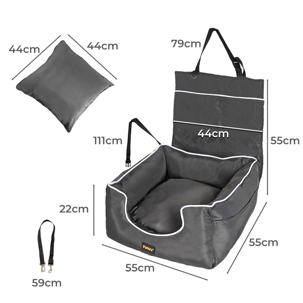 Clip your dog into their own dog car seat. Drive to the local park. Unclip your dog and let them do some zoomies before taking them home. Keep your dog safe and secure when travelling.Dogs are pack animals. Your doggo loves to snuggle up and feel safe amongst others. Your dog car seat works as a dog bed too. Help your dog relax into sleep. Good sleep unlocks a healthy life.We know dogs. Your dog car seat is designed with an active dog in mind. It will last through the scratches and bites of many a dog or even a cat. Let them flop into their seat and ride along with you.Just unzip your cover from your pet car seat. Wash it in your washing machine. Don’t put the filling through the washing machine. Keep your pet seat clean so your pet can be the healthiest possible.Your dog or cat deserves their very own safe pet seat with cover. Just make sure they are probably leashed up in the back. Restraints keep everyone safer.