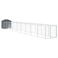 Provide safety and comfort for your furry friends with this dog house with run. Versatile use: Combing with the extended run, the versatile doghouse provides ample space for your pet. It features multiple uses: playing, exercising, training, or simply keeping your puppy safe. It will be the perfect play paradise for your furry friends!Durable construction: Thanks to the sturdy and heavy-duty galvanised steel construction, the dog kennel is durable and built to last.Mesh design: The mesh design of the extended run helps prevent mischief and unexpected accidents while enabling ventilation.Practical roof: The roof of the dog cage protects the puppy from the sun, rain, snow, and other weather conditions.Convenient access: There is an entrance to the animal house and a door with a latch on the extended run, both making it easy to get in and out.