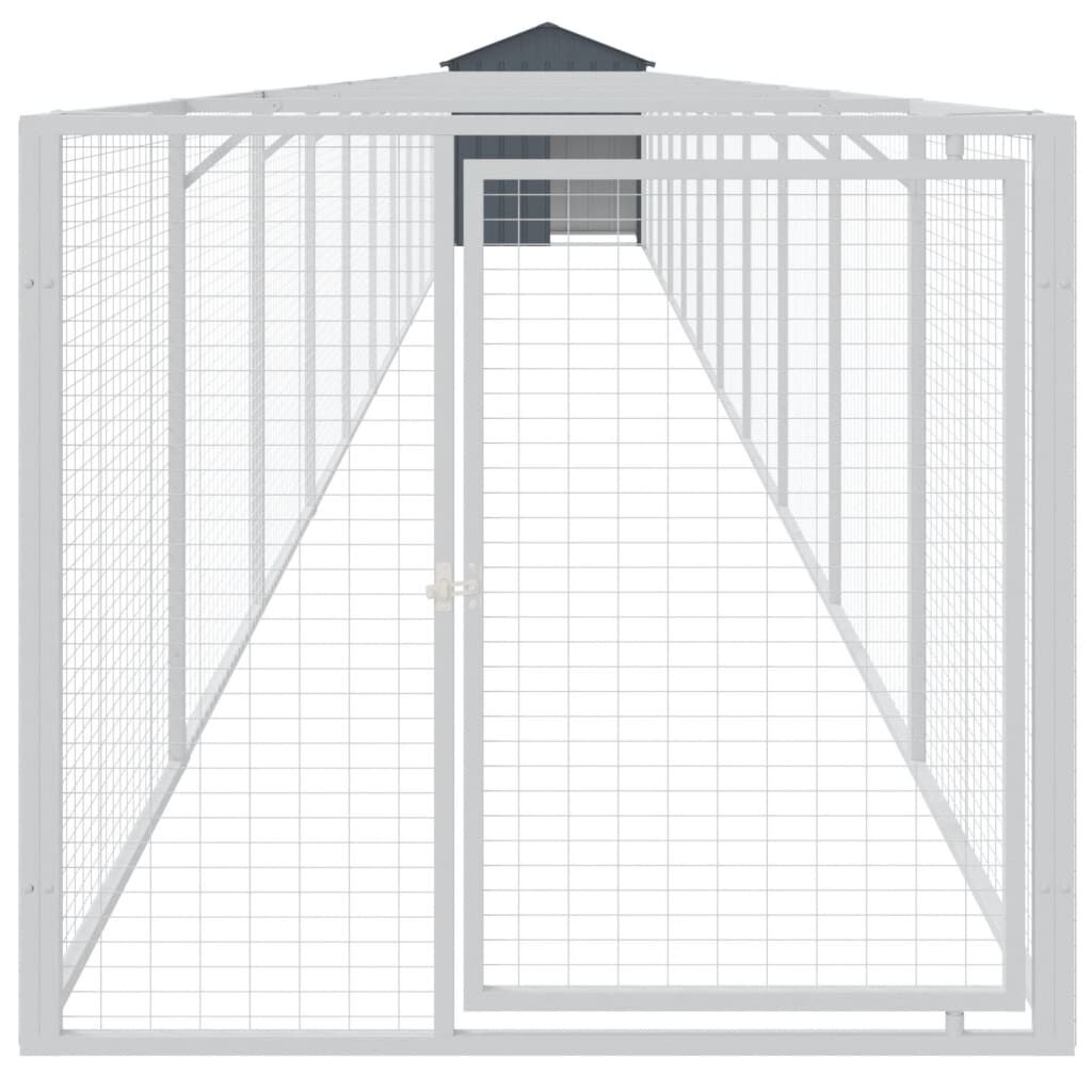 Provide safety and comfort for your furry friends with this dog house with run. Versatile use: Combing with the extended run, the versatile doghouse provides ample space for your pet. It features multiple uses: playing, exercising, training, or simply keeping your puppy safe. It will be the perfect play paradise for your furry friends!Durable construction: Thanks to the sturdy and heavy-duty galvanised steel construction, the dog kennel is durable and built to last.Mesh design: The mesh design of the extended run helps prevent mischief and unexpected accidents while enabling ventilation.Practical roof: The roof of the dog cage protects the puppy from the sun, rain, snow, and other weather conditions.Convenient access: There is an entrance to the animal house and a door with a latch on the extended run, both making it easy to get in and out.