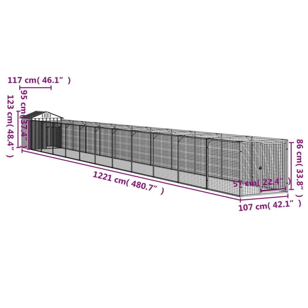 Provide safety and comfort for your furry friends with this dog house with run. Versatile use: Combing with the extended run, the versatile doghouse provides ample space for your pet. It features multiple uses: playing, exercising, training, or simply keeping your puppy safe. It will be the perfect play paradise for your furry friends!Durable construction: Thanks to the sturdy and heavy-duty galvanised steel construction, the dog kennel is durable and built to last.Mesh design: The mesh design of the extended run helps prevent mischief and unexpected accidents while enabling ventilation.Practical roof: The roof of the dog cage protects the puppy from the sun, rain, snow, and other weather conditions.Convenient access: There is an entrance to the animal house and a door with a latch on the extended run, both making it easy to get in and out.