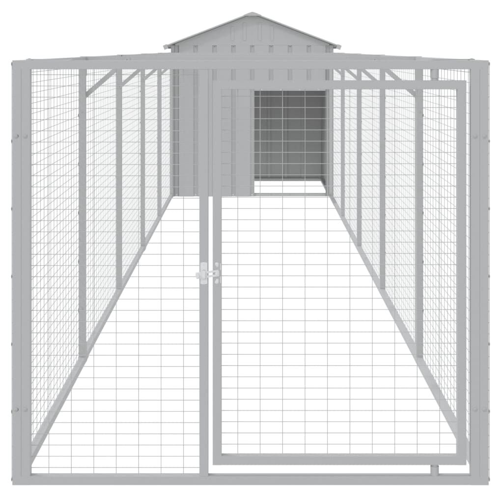 Provide safety and comfort for your furry friends with this dog house with run. Versatile use: Combing with the extended run, the versatile doghouse provides ample space for your pet. It features multiple uses: playing, exercising, training, or simply keeping your puppy safe. It will be the perfect play paradise for your furry friends!Durable construction: Thanks to the sturdy and heavy-duty galvanised steel construction, the dog kennel is durable and built to last.Mesh design: The mesh design of the extended run helps prevent mischief and unexpected accidents while enabling ventilation.Practical roof: The roof of the dog cage protects the puppy from the sun, rain, snow, and other weather conditions.Convenient access: There is an entrance to the animal house and a door with a latch on the extended run, both making it easy to get in and out.