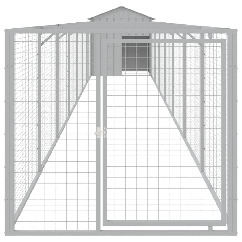Provide safety and comfort for your furry friends with this dog house with run. Versatile use: Combing with the extended run, the versatile doghouse provides ample space for your pet. It features multiple uses: playing, exercising, training, or simply keeping your puppy safe. It will be the perfect play paradise for your furry friends!Durable construction: Thanks to the sturdy and heavy-duty galvanised steel construction, the dog kennel is durable and built to last.Mesh design: The mesh design of the extended run helps prevent mischief and unexpected accidents while enabling ventilation.Practical roof: The roof of the dog cage protects the puppy from the sun, rain, snow, and other weather conditions.Convenient access: There is an entrance to the animal house and a door with a latch on the extended run, both making it easy to get in and out.