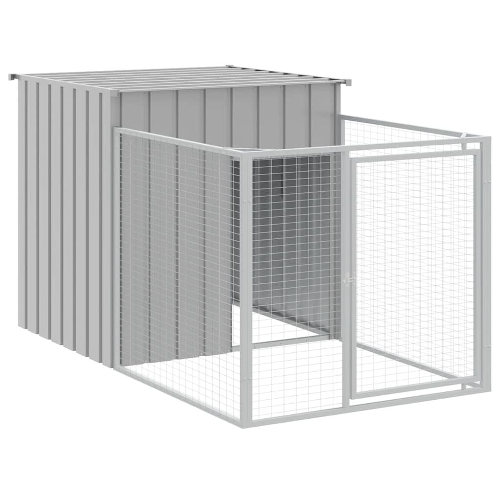 Provide safety and comfort for your furry friends with this dog house with run. Versatile use: Combing with the extended run, the versatile doghouse provides ample space for your pet. It features multiple uses: playing, exercising, training, or simply keeping your puppy safe. It will be the perfect play paradise for your furry friends!Durable construction: Thanks to the sturdy and heavy-duty galvanised steel construction, the dog kennel is durable and built to last.Mesh design: The mesh design of the extended run helps prevent mischief and unexpected accidents while enabling ventilation.Practical roof: The roof of the dog cage protects the puppy from the sun, rain, snow, and other weather conditions.Convenient access: There is an entrance to the animal house and a door with a latch on the extended run, both making it easy to get in and out.