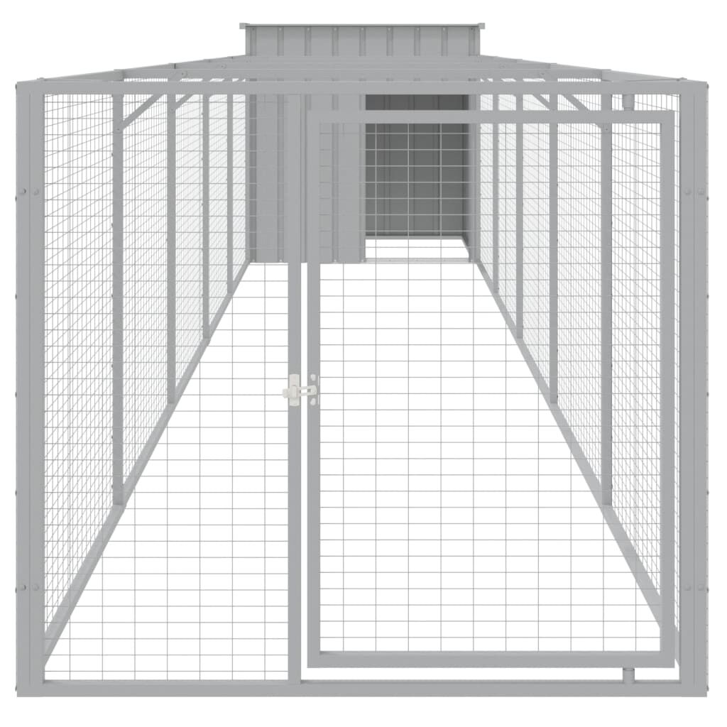 Provide safety and comfort for your furry friends with this dog house with run. Versatile use: Combing with the extended run, the versatile doghouse provides ample space for your pet. It features multiple uses: playing, exercising, training, or simply keeping your puppy safe. It will be the perfect play paradise for your furry friends!Durable construction: Thanks to the sturdy and heavy-duty galvanised steel construction, the dog kennel is durable and built to last.Mesh design: The mesh design of the extended run helps prevent mischief and unexpected accidents while enabling ventilation.Practical roof: The roof of the dog cage protects the puppy from the sun, rain, snow, and other weather conditions.Convenient access: There is an entrance to the animal house and a door with a latch on the extended run, both making it easy to get in and out.