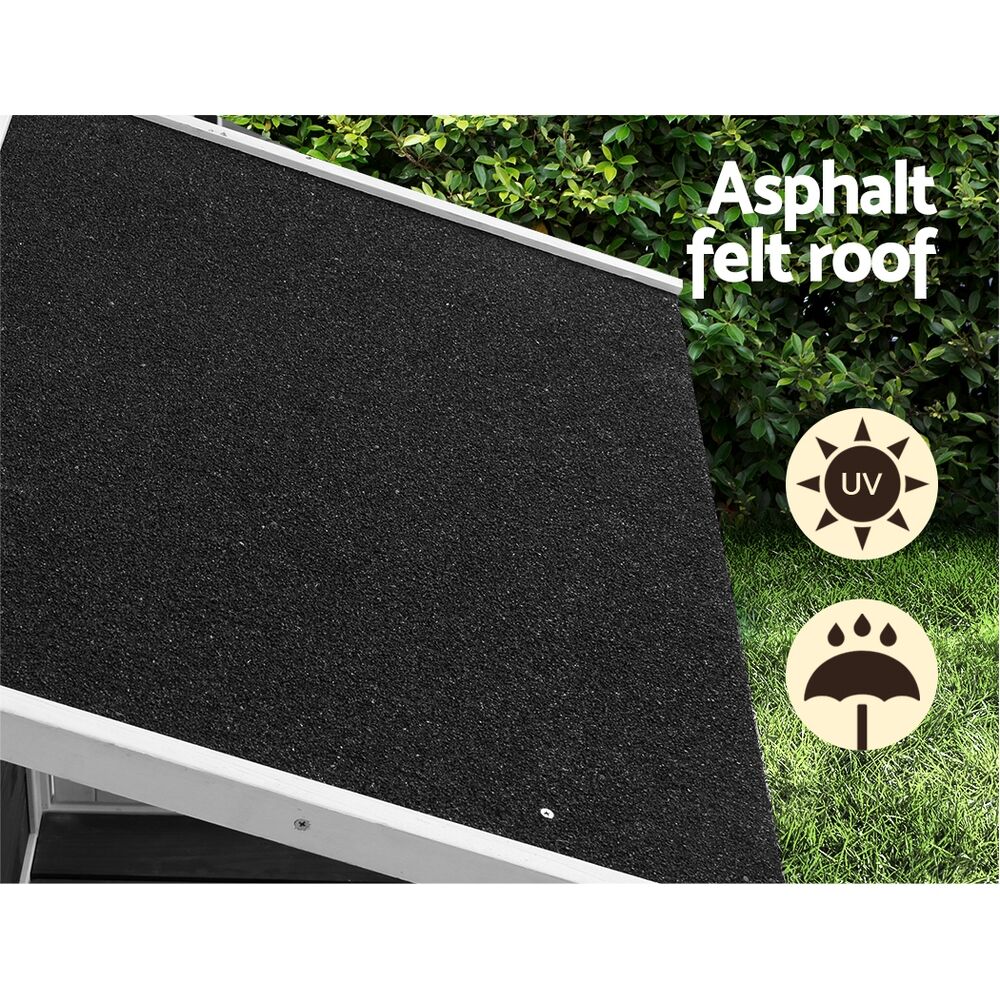 $223.71Give your beloved pets a safe and comfortable home to sleep, relax and play with an i.Pet Pet Kennel. Made from solid natural Fir wood with a UV-resistant asphalt roof, the kennel is weatherproof and built to last all seasons, all year round. The angled roof allows for proper drainage during wet weather, and the raised floor and elevated base keep the kennel well-ventilated to prevent mould and odour build-up. Rubber feet keep the kennel firmly in place no matter where you place it. The outdoor awning with steel bars and a door, providing a secure place for your pet to relax. Two entry and exit point provide easy access for your pet and easy cleaning for you. Easy to install and maintain anywhere in and out of the home, the i.Pet Pet Kennel is the perfect home for your furry friend.