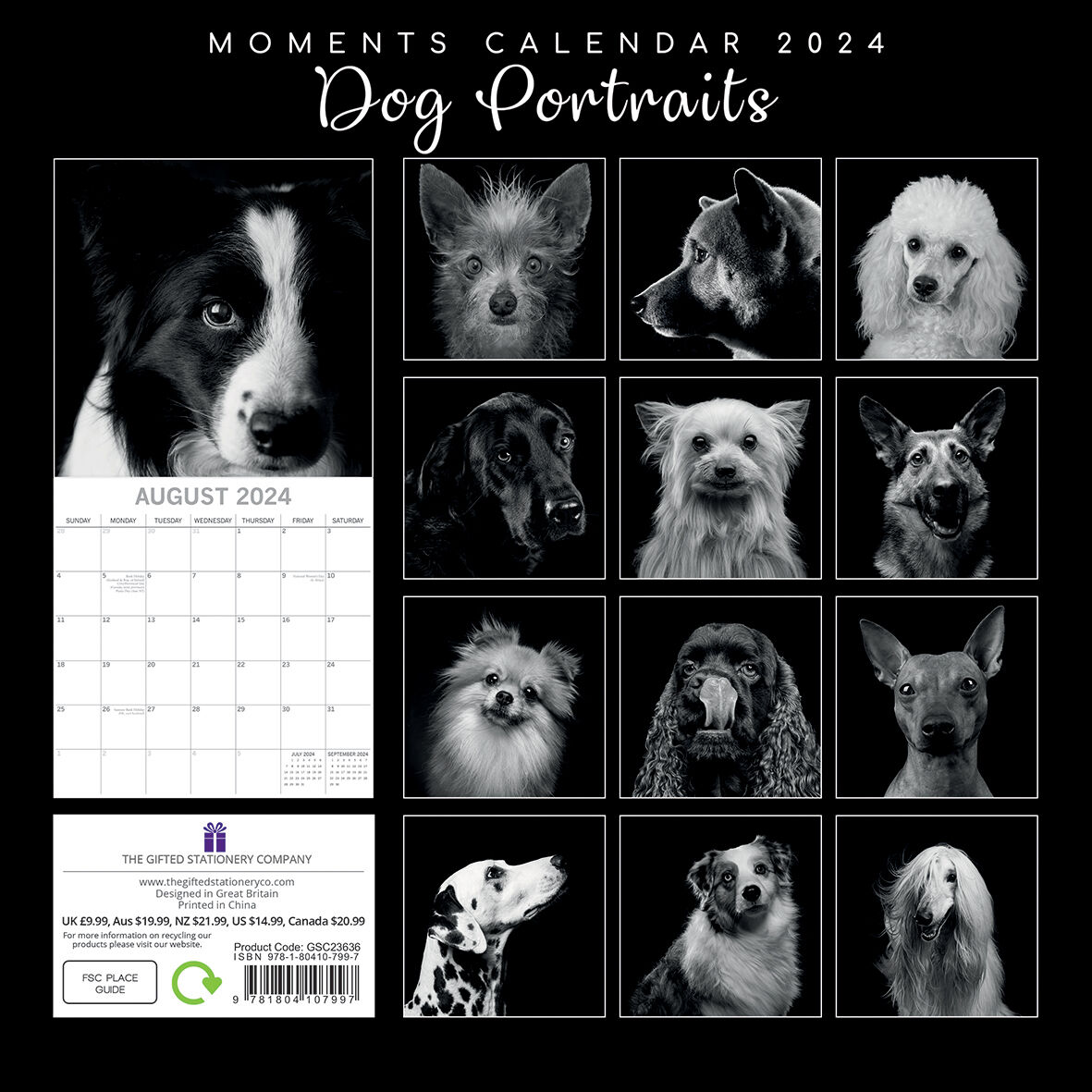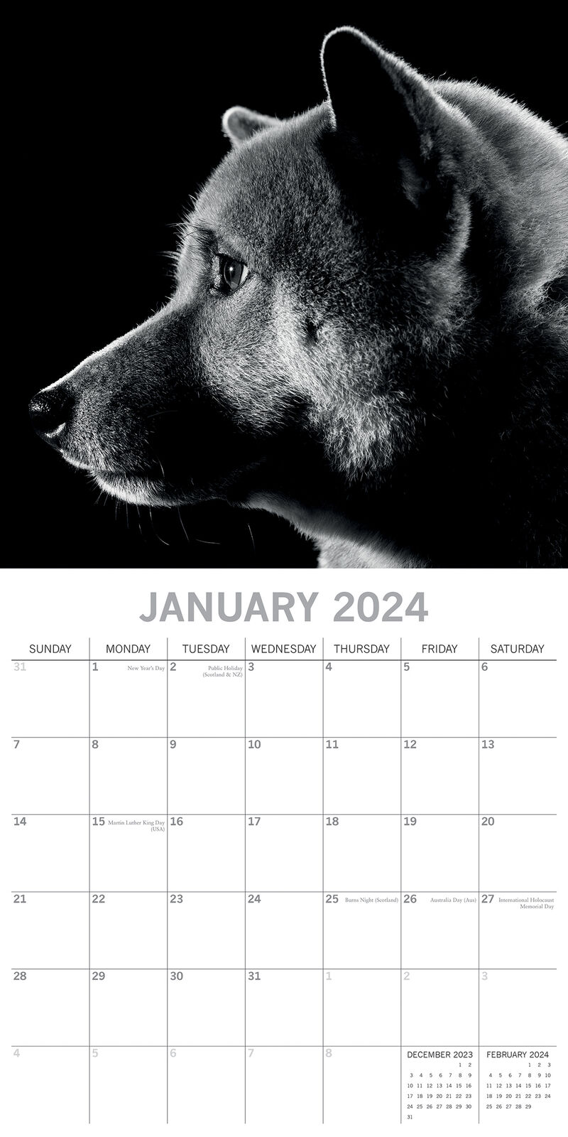 Dog Portraits - 2024 Square Wall Calendar 16 Months Black & White Planner Gift