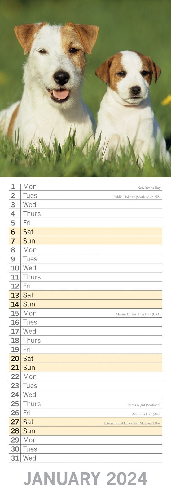 Dogs & Puppies - 2024 Slimline Slim Wall Calendar Hanging Planner New Year Gift