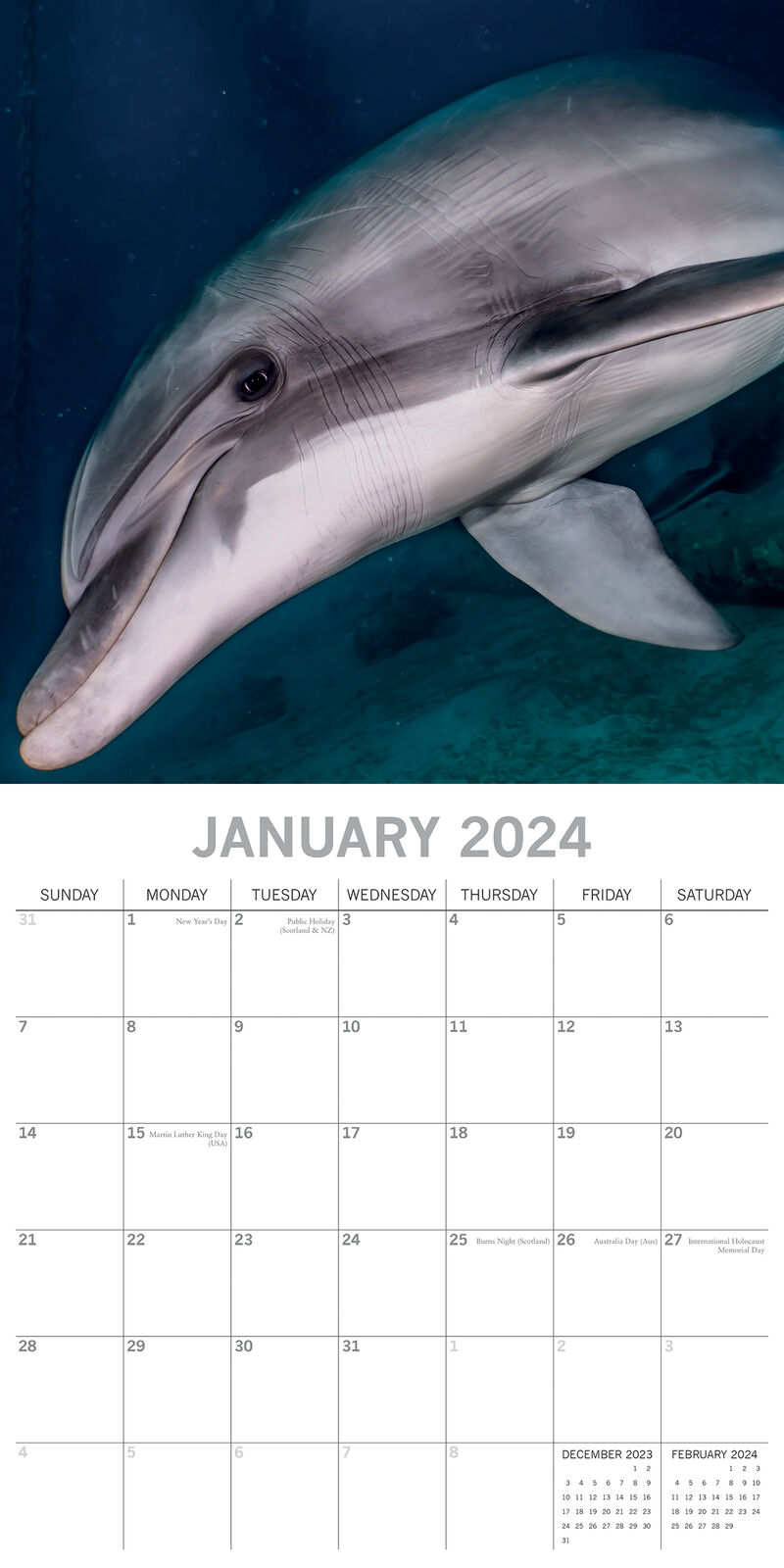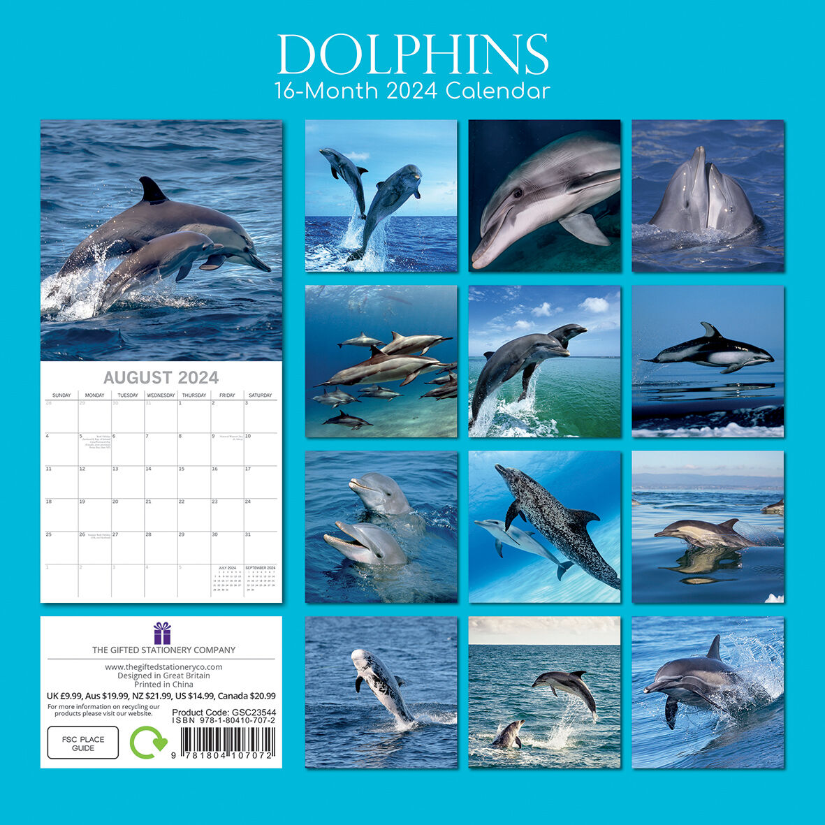 Dolphins - 2024 Square Wall Calendar Sea Animals 16 Months Premium Planner Gift