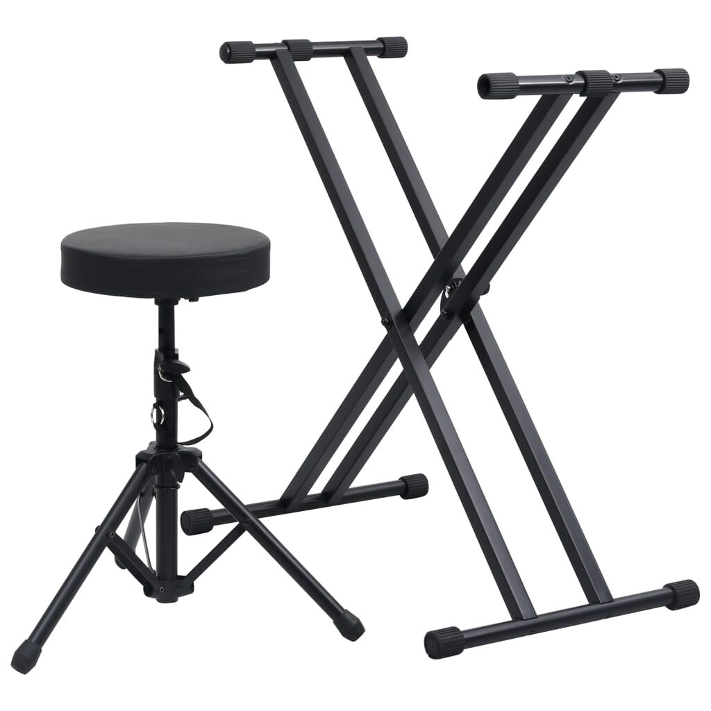 This adjustable keyboard stand and stool set is ideal companion for your keyboard performance and practice. The keyboard stand is made of rugged steel, making it very durable and stable. And the padded round stool offers you ultimate comfort in your sitting time. With several adjustable working heights, the stand and the stool both could be easily set at the desired height for players of different stature. Thanks to the foldable function, the stand and stool are designed for easy portability and better storage while travelling on the road. Delivery includes one stand and one stool.