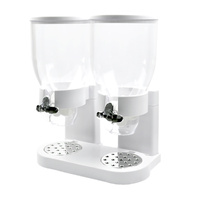 $34.77Our Double Cereal Dispenser prevents cereal or other dry foods from going stale. Kids will find it fun turning the knob and watching the cereal fall perfectly into their bowl while moms can be assured that kids will not be spilling cereal all over the kitchen. Best of all, the dispenser is hermetically sealed which preserves the freshness of dry food. Simply place a bowl under the dispenser and twist a knob to get a controlled portion. Transparent cylinder provides a see-through design for a fun mix and match of cereal to create a healthier lifestyle. Available in black or white, get one for your kids to enjoy the cereal and dry food in style!