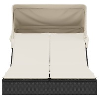 Relax and enjoy the outdoors in this comfortable double sun lounger! Durable material: PE rattan, also known as poly rattan, is a strong, low-maintenance synthetic material that looks like natural rattan. It's lightweight, easy to clean, and commonly used for outdoor furniture due to its durability and weather-resistant properties. Adjustable backrest: This outdoor furniture features a backrest with 2 adjustable positions, allowing you to easily find the most comfortable and suitable position for relaxation. Retractable canopy: Thanks to the retractable canopy, you can create a cool, pleasant outdoor environment throughout the day. Comfortable seat experience: This outdoor furniture, complete with thickly padded cushions, offers a comfortable seating experience. Removable and washable cover: These seat cushions feature removable covers for easy washing and maintenance. Good to know:To make sure your outdoor furniture stays beautiful, we recommend protecting it with a waterproof cover.