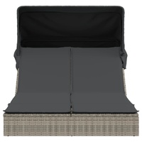 Relax and enjoy the outdoors in this comfortable double sun lounger! Durable material: PE rattan, also known as poly rattan, is a strong, low-maintenance synthetic material that looks like natural rattan. It's lightweight, easy to clean, and commonly used for outdoor furniture due to its durability and weather-resistant properties. Adjustable backrest: This outdoor furniture features a backrest with 2 adjustable positions, allowing you to easily find the most comfortable and suitable position for relaxation. Retractable canopy: Thanks to the retractable canopy, you can create a cool, pleasant outdoor environment throughout the day. Comfortable seat experience: This outdoor furniture, complete with thickly padded cushions, offers a comfortable seating experience. Removable and washable cover: These seat cushions feature removable covers for easy washing and maintenance. Good to know:To make sure your outdoor furniture stays beautiful, we recommend protecting it with a waterproof cover.