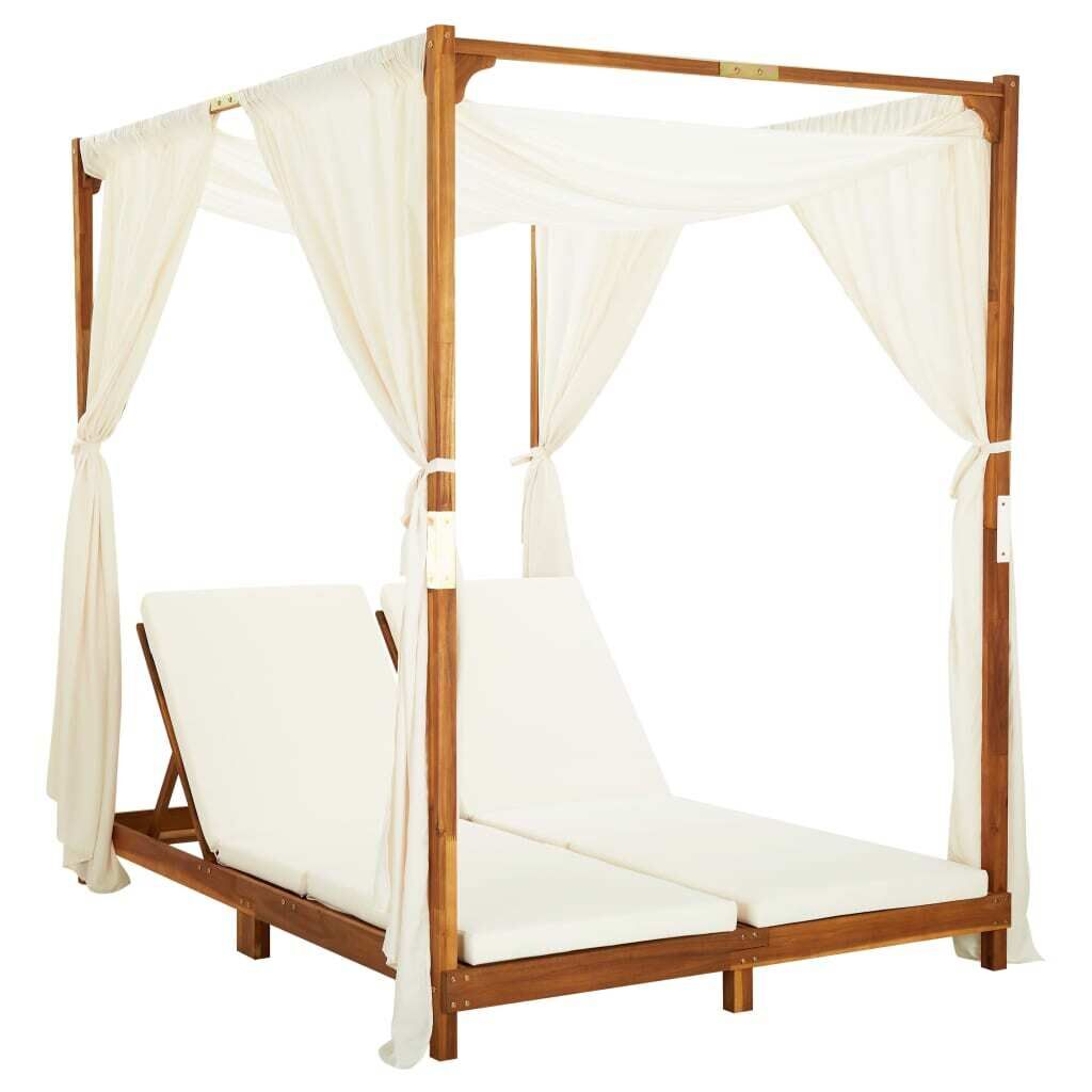 $819.67This 2-person wooden sun lounger with curtains combines style and functionality and is meant to be the focal point of your garden or patio. This sun lounger features a strong construction of solid acacia wood, making it stable and durable. The foldable backrests on both head and foot section can be adjusted as per your comfort and desired position. The thick and removable cushions also add to its seating and lying comfort. The polyester curtain protects you from the sunlight when you read or relax on summer days.