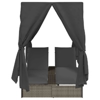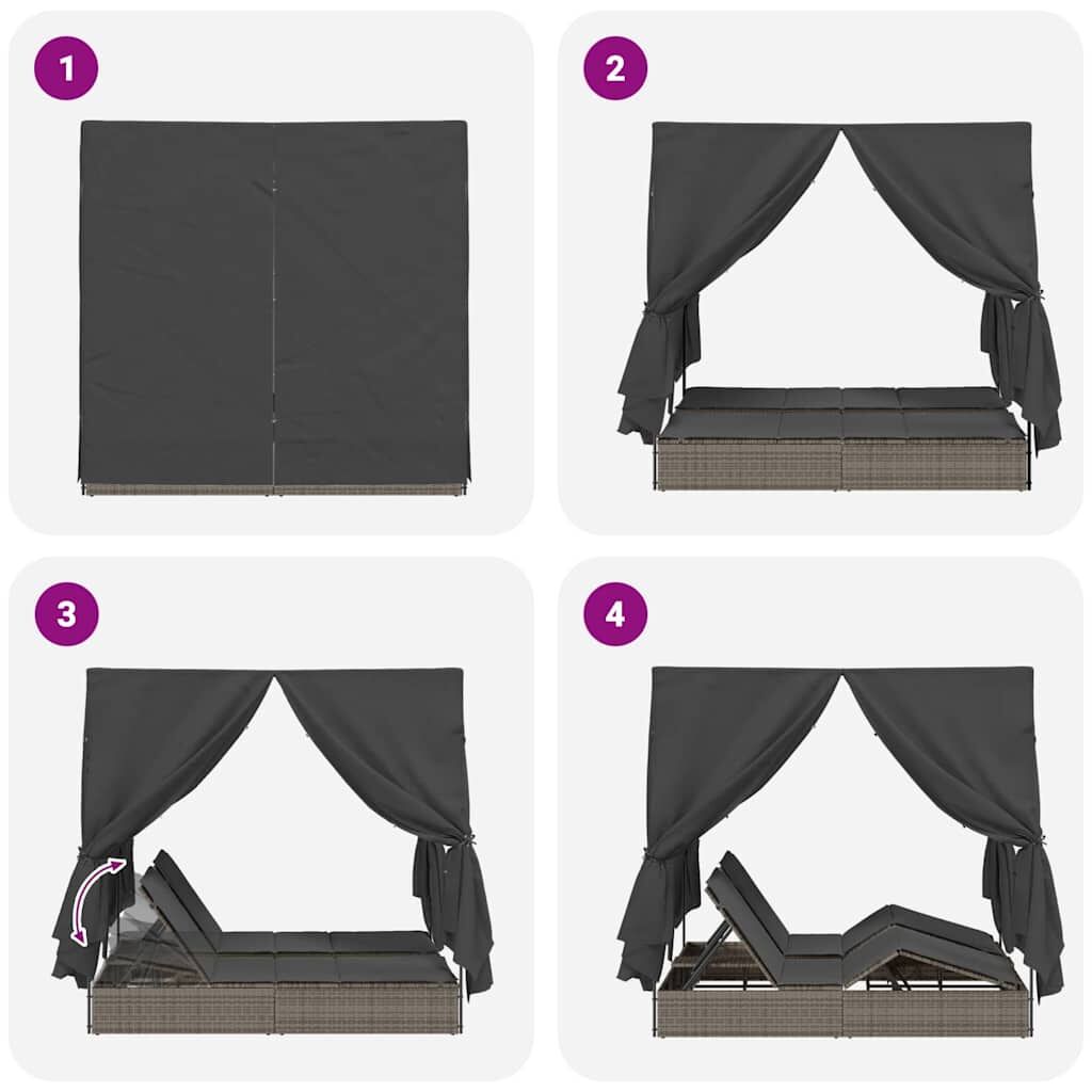 Check out this brilliant Outdoor Double Sun Lounger with Roof and Curtains—it’s the ultimate for outdoor chillin'. Imagine yourself soaking up the sun on a lovely morning or kicking back on a breezy evening, all while relaxing in this fab lounger. Its stylish design and flexible layout make it a top choice for gardens or patios, giving you an awesome outdoor experience. Top Quality Materials: This lounger is crafted from PE rattan, looking slick while being UV-resistant and weatherproof. The steel frame adds stability and strength, making it perfect for outdoor use, and it’ll last for ages. All the Essentials: Comes with a roof fabric, 8 side curtains, and 2 seat cushions included. The curtains give you some privacy, and the removable cushion covers are super easy to clean, which is a big plus. Comfort-Focused Design: With adjustable backrest and footrest options, this double sun lounger has your comfort sorted. You’ll easily find the best position to kick back, soak up the sun, or read your fave book. Multi-Purpose Use: Perfect for any outdoor area like gardens or patios, this lounger's made for outside fun. It’s an awesome buddy for summer evenings watching the sunset or calm mornings meditating in peace. Simple Maintenance: The seat cushions have removable covers that are a breeze to wash, keeping them looking good over time. The PE rattan and metal frame just need a quick wipe down, making it super low maintenance.