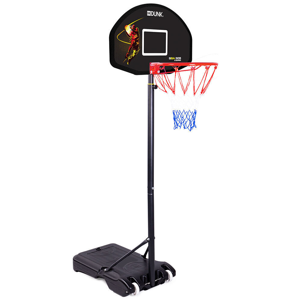 NOW $146.59The Dr.Dunk SBA305 G Series Basketball Stand is designed to provide your little baller with a high-quality, safe and fun playing experience. This portable hoop system has built-in wheels, allowing you to position it anywhere you please from the backyard to the end of the street. Made from steel tubing and durable blow molding PE, it is sure to withstand the roughest games.