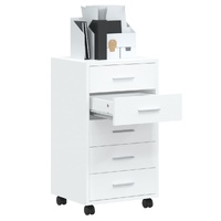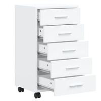 This modern, stylish drawer cabinet with castors will make a perfect, practical storage solution for any office or study. Durable material: The engineered wood is of exceptional quality with a smooth surface and also features strength, stability and resistance to moisture.Ample storage space: The cabinet has 5 drawers, providing ample storage space for documents, notebooks, pens, paper clips, keys and other office supplies.Flexible design: Thanks to its 4 wheels, the drawer chest can be flexibly placed and easily moved around. This storage cabinet is also a perfect match for a computer desk as well as an excellent piece of furniture for your kid's room. Note: Each product comes with an assembly manual in the box for easy assembly.