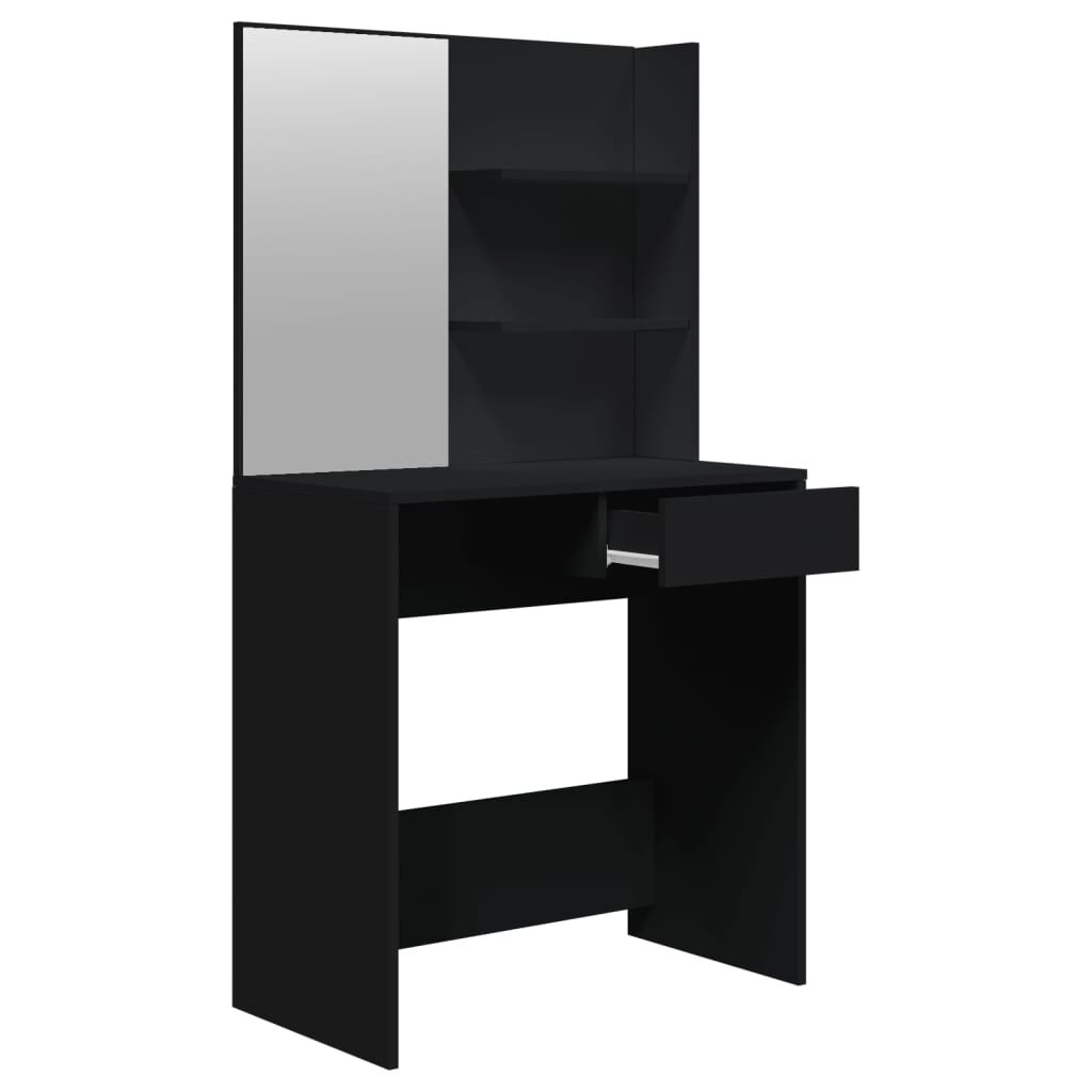 The trendy dressing table set gives your bedroom a timeless, refined look. The dressing table with stool is a perfect addition to your bedroom decor and also keeps your cosmetics close at hand! Stable material: The engineered wood is of exceptional quality with smooth surface and also features strength, stability and resistance to moisture.Ample storage space: The makeup table provides ample space for easy access to your make-up, jewellery and everyday essentials.Utility mirror: The vanity table with the mirror is perfect for your daily beauty routine. The mirror allows you to take care of your facial skin and wear your makeup too!Wide applications: This dressing table set is suitable for various scenes, such as your bedroom, cloakroom and any other room you want to place it in.Modern design: The modern design features clean lines and minimalistic looks as a part of the interior design style. Warning:To prevent it being overturned, this product must be used with the provided wall attachment device.