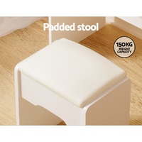 $158.85Feel like a star straight out of Hollywood with the Artiss Doris Dressing Table. Packed with generous storage and other convenient features, your new beauty routine will be a breeze. Made from quality MDF particleboard with a white melamine finish, the table is built to last. The Hollywood-style makeup mirror is surrounded by a bright LED strip for the perfect illumination. Choose from warm, neutral and daylight white light so you can always look stage-ready. The vanity features open shelves that you can use to display trinkets or beauty products. Two generous storage drawers with gold handles open smoothly on anti-rust runners, giving you instant access to your beauty essentials. A foam-padded PU leather stool allows you to sit comfortably while applying make-up or skincare and can be neatly tucked away when not in use. Easy to install and even easier to maintain, you'll love getting ready for the day in front of your new Artiss Doris Dressing Table.