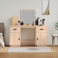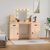 This trendy wooden dressing table set with LED is an excellent addition to your bedroom decor. It also keeps your cosmetics within reach! Solid pine wood: Solid pine wood is a beautiful natural material. Pine wood has a straight grain, and the knots give the material its signature, rustic look.Ample storage: This makeup table provides ample space and easy access to your make-up, jewellery and daily essentials.Utility mirror: The included beautiful mirror provides a clear view for makeup application and adds an elegant touch to the vanity table.LED light: The vanity desk has LED bulbs with USB, which are easy to switch modes from warm to cold white. The featured LED bulbs around the mirror illuminate your beauty as well.Practical door: Keep your essentials free from dust by hiding them behind the door of this makeup vanity desk. Warning:In order to prevent overturning, this product must be used with the wall attachment device provided. Note:Each product comes with an assembly manual in the box for easy assembly.