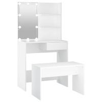 The trendy dressing table set gives your bedroom a timeless, refined look. The dressing table set with LED is a perfect addition to your bedroom decor and also keeps your cosmetics close at hand! Stable material: The engineered wood is of exceptional quality with smooth surface and also features strength, stability and resistance to moisture.Utility mirror: The dressing table with mirror is perfect for your daily beauty routine. The mirror allows you to take care of your facial skin and wear your makeup too!Ample storage space: The dressing table with stool provides ample space for easy access to your make-up, jewellery and everyday essentials.LED light: The dressing table also has LED bulbs with USB, which are easy to switch modes from warm to cold white. The featured LED bulbs around mirror illuminate your beauty as well.Wide applications: This dressing table set is suitable for various scenes, such as your bedroom, cloakroom and any other room you want to place it in. WARNING:In order to prevent overturning, this product must be used with the wall attachment device provided. Note:Each product comes with an assembly manual in the box for easy assembly.