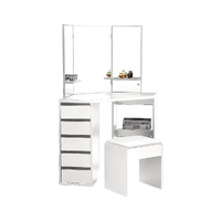 Our product defines quality. Built from high-strength MDF and particleboard. A perfect blend of quality and consistency. The stool is made from a durable particleboard, strong and tough able to withstand weights up to 100kg. The seat on the stool is padded with PU material, very soft, and comfortable to sit on. Our product is built to provide you with maximum storage capability. Equipped with five generous sized drawers, store all your essential stuff in one place. Also provided with open shelves to place immediate accessories. Ample legroom is provided underneath the table, never feel restricted or annoyed when performing the most important task of the day.