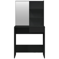 With refined straight lines and an asymmetrical shape brimming with originality, this dressing table is sure to turn heads! Stable material: The engineered wood is of exceptional quality with smooth surface and also features strength, stability and resistance to moisture.Utility mirror: The makeup table with the mirror is perfect for your daily beauty routine. The mirror allows you to take care of your facial skin and wear your makeup too!Ample storage space: The vanity tabletop, the two-tier shelves on the table and one under-table drawer provide ample space for easy access to your make-up, jewellery and everyday essentials.Modern design: The modern design features clean lines and minimalistic looks as a part of the interior design style. Warning:To prevent it being overturned, this product must be used with the provided wall attachment device.