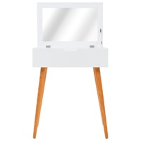 This dressing table will make a perfect addition to your bedroom or changing room decor with its chic design and clean white finish. This table is made of MDF and has a glass mirror. It features a panel that can be lifted to reveal a mirror and spacious jewellery compartments. It offers plenty of room for your cosmetics, hair products and skincare items. When the mirror is not in use, the tabletop then becomes an ideal place for an array of makeup, jewellery, and beauty supplies. The sturdy wooden legs also add to its stability as well as its mid-century modern style. Assembly is easy.
