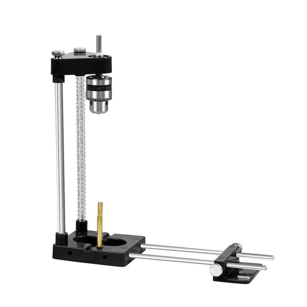 Drill a hole. Drill another hole. Your drill guide will help you drill holes for years to come. Use 1.5mm all the way up to 10mm drill bits. Use the chuck key to switch our drill bits as needed.