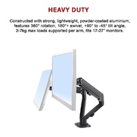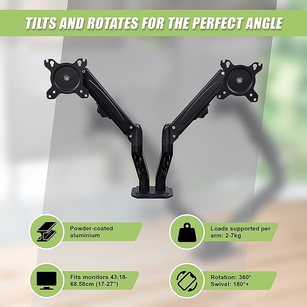 Simply install it on the edge of your worktable or desk or use a grommet to install it anywhere on your desk. It rotates 360 degrees and swivels horizontally 180 degrees to ensure the ideal viewing perspective for you and your colleagues as you collaborate. Its strong yet lightweight aluminium construction supports even the heaviest screens up to nine kilogrammes per arm. Its powder-coated finish ensures durability, even with heavy everyday use. Its integrated cable management system keeps cables from ending up in a tangle, so your desk will have a neat, professional appearance. It fits screens from 43.18 to 68.58 cm, accommodating a wide range of devices.