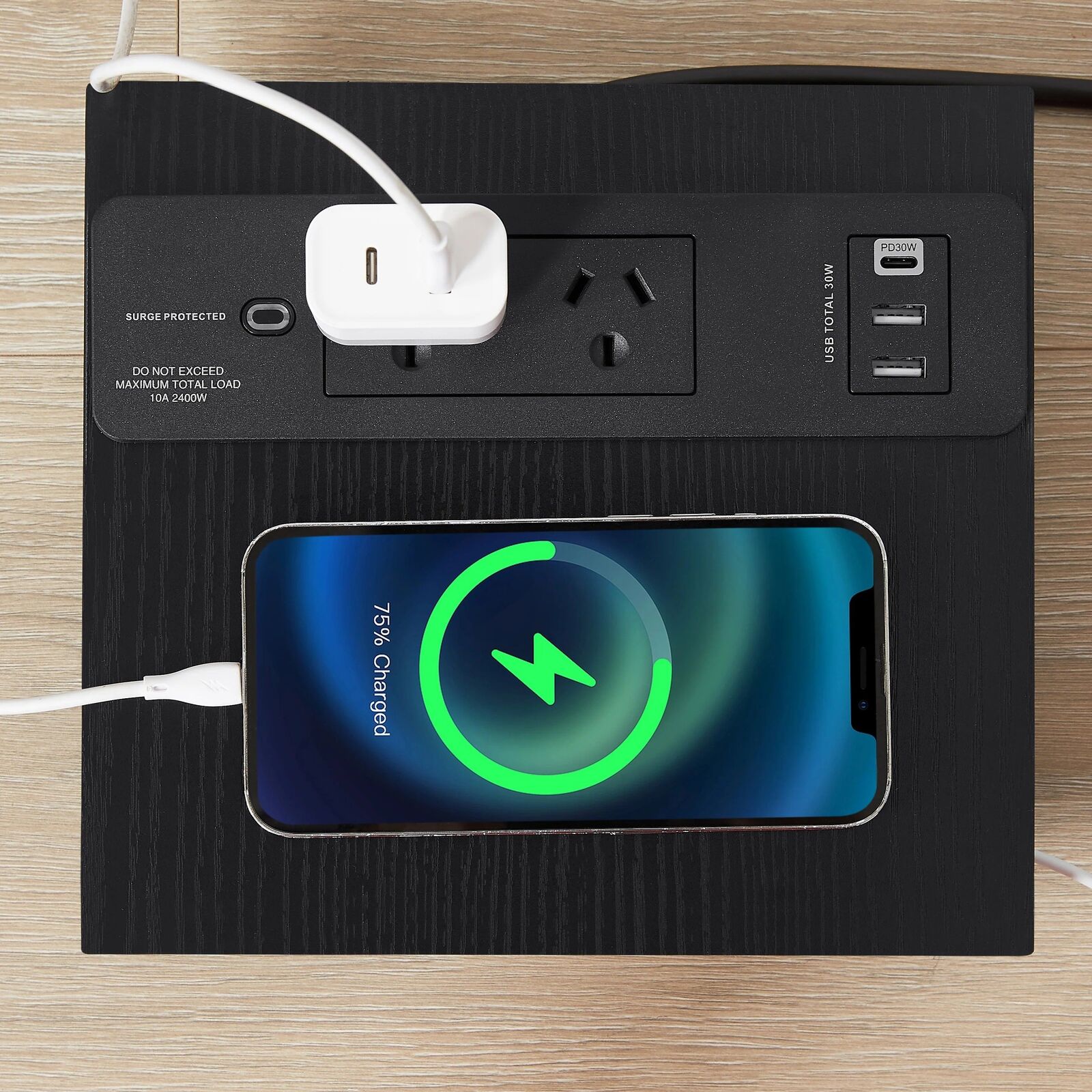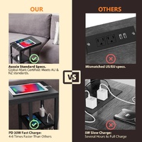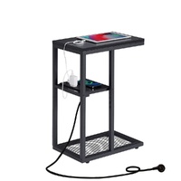 $165.43E-Shaped Sofa Side Table with Power Board, Black