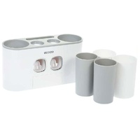 Multi-functional combination: a set of products containing 2 automatic toothpaste dispenser for children and adult, 4 dustproof environment friendly cup for 4 member of family, dust toothbrush holder, multi-functional incorporating shelves, a set of products to solve the problem of incorporating toiletries of a family.