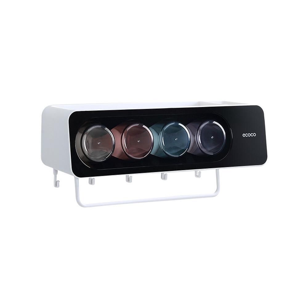 Multi-functional combination: a set of products containing4 dustproof environment friendly cup for 4 member of family, dust toothbrush holder, multi-functional incorporating shelves, a set of products to solve the problem of incorporating toiletries of a family