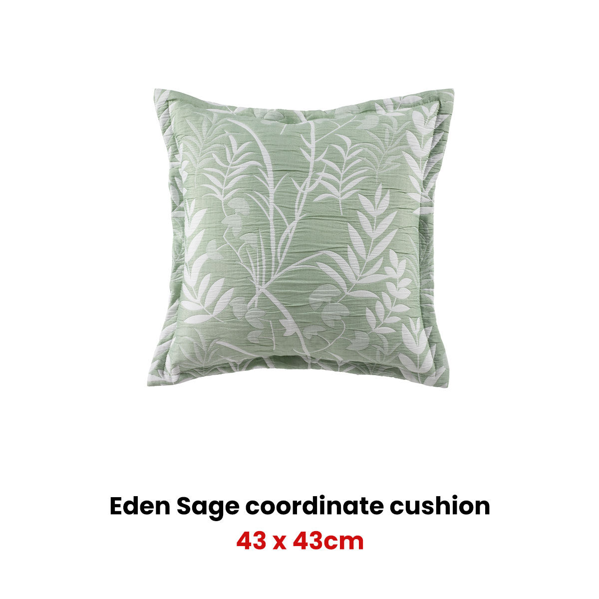 Give your bedroom the lift it needs with this stunning botanical inspired Eden Sage Coordinate Square Filled Cushion by Bianca. The Eden Sage Coordinate Square Filled Cushion by Bianca features a white jacquard leaf design that contrasts beautifully on a sage crisp background.