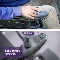 Steering is intuitive using the joystick that can be mounted on either the left or right-hand side, and with easy-to-read LED controls. You can travel along at a sensible speed of up to 6km/h, which is a brisk walking pace.