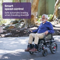 This Equipmed electric wheelchair has many features built-in; Seat Belt, Anti-tip Wheels, Dual Park Brake, and Smart Speed Control which regulates the speed when going downhill. The high-quality frame means that it can accommodate a 130 kg rider weight.