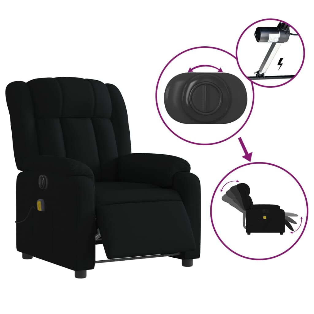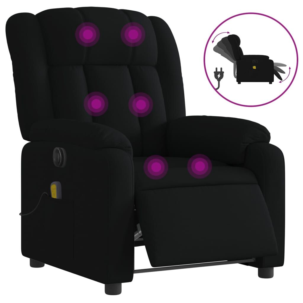 Sit back and drift away in this highly comfortable electric massage recliner chair! Electric reclining function: This recliner chair is equipped with an electric motor that helps automatically adjust the footrest and backrest to any position as per your comfort with a simple press of the button on the side of the chair. This feature allows for a maximum tilt of 135 degrees. Additionally, the backrest can go automatically back to the original place with an easy press of the button.Vibration function: The featured 6 massage points let you experience a better-targeted massage. Additionally, the included hand control allows you to pick different massage programs. The massage function is powered by the USB connector that requires a certified 5V USB power source (not included).Comfortable seat experience: The thickly padded seat, backrest, and wide armrests covered in fabric provide a cosy and warm sensation, making you feel embraced while seated. The fabric features a simple and clean look and is breathable and durable.Convenient side pocket: This armchair has a side pocket for your remote control or keeping your essential items within easy reach.Solid and stable frame: The frame made of wood and metal provides a strong structure and stability. This reclining armchair is comfortable and durable.