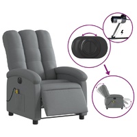 Sit back and drift away in this highly comfortable electric massage recliner chair! Electric reclining function: This recliner chair is equipped with an electric motor that helps automatically adjust the footrest and backrest to any position as per your comfort with a simple press of the button on the side of the chair. This feature allows for a maximum tilt of 135 degrees. Additionally, the backrest can go automatically back to the original place with an easy press of the button. Vibration function: The featured 6 massage points let you experience a better-targeted massage. Additionally, the included hand control allows you to pick different massage programs. The massage function is powered by the USB connector that requires a certified 5V USB power source (not included). Comfortable seat experience: The thickly padded seat, backrest, and wide armrests covered in fabric provide a cosy and warm sensation, making you feel embraced while seated. The fabric features a simple and clean look and is breathable and durable. Convenient side pocket: This armchair has a side pocket for your remote control or keeping your essential items within easy reach. Solid and stable frame: The frame made of wood and metal provides a strong structure and stability. This reclining armchair is comfortable and durable.