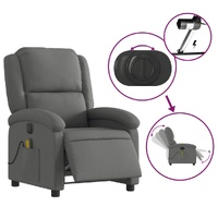 Sit back and drift away in this highly comfortable electric massage recliner chair! Electric reclining function: This recliner chair is equipped with an electric motor that helps automatically adjust the footrest and backrest to any position as per your comfort with a simple press of the button on the side of the chair. This feature allows for a maximum tilt of 135 degrees. Additionally, the backrest can go automatically back to the original place with an easy press of the button. Vibration function: The featured 6 massage points let you experience a better-targeted massage. Additionally, the included hand control allows you to pick different massage programs. The massage function is powered by the USB connector that requires a certified 5V USB power source (not included). Comfortable seat experience: The thickly padded seat, backrest, and wide armrests covered in fabric provide a cosy and warm sensation, making you feel embraced while seated. The fabric features a simple and clean look and is breathable and durable. Convenient side pocket: This armchair has a side pocket for your remote control or keeping your essential items within easy reach. Solid and stable frame: The frame made of wood and metal provides a strong structure and stability. This reclining armchair is comfortable and durable.