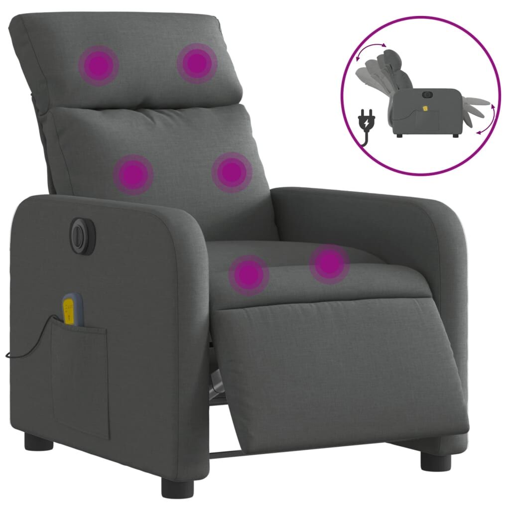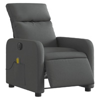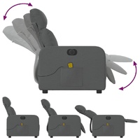 Sit back and drift away in this highly comfortable electric massage recliner chair! Electric reclining function: This recliner chair is equipped with an electric motor that helps automatically adjust the footrest and backrest to any position as per your comfort with a simple press of the button on the side of the chair. This feature allows for a maximum tilt of 135 degrees. Additionally, the backrest can go automatically back to the original place with an easy press of the button.Vibration function: The featured 6 massage points let you experience a better-targeted massage. Additionally, the included hand control allows you to pick different massage programs. The massage function is powered by the USB connector that requires a certified 5V USB power source (not included).Comfortable seat experience: The thickly padded seat, backrest, and wide armrests covered in fabric provide a cosy and warm sensation, making you feel embraced while seated. The fabric features a simple and clean look and is breathable and durable.Convenient side pocket: This armchair has a side pocket for your remote control or keeping your essential items within easy reach.Solid and stable frame: The frame made of wood and metal provides a strong structure and stability. This reclining armchair is comfortable and durable.