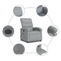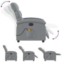 Sit back and drift away in this highly comfortable electric massage recliner chair! Electric reclining function: This recliner chair is equipped with an electric motor that helps automatically adjust the footrest and backrest to any position as per your comfort with a simple press of the button on the side of the chair. This feature allows for a maximum tilt of 135 degrees. Additionally, the backrest can go automatically back to the original place with an easy press of the button. Vibration function: The featured 6 massage points let you experience a better-targeted massage. Additionally, the included hand control allows you to pick different massage programs. The massage function is powered by the USB connector that requires a certified 5V USB power source (not included). Comfortable seat experience: The thickly padded seat, backrest, and wide armrests covered in fabric provide a cosy and warm sensation, making you feel embraced while seated. The fabric features a simple and clean look and is breathable and durable. Convenient side pocket: This armchair has a side pocket for your remote control or keeping your essential items within easy reach. Solid and stable frame: The frame made of wood and metal provides a strong structure and stability. This reclining armchair is comfortable and durable.