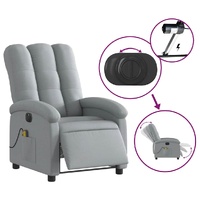 Sit back and drift away in this highly comfortable electric massage recliner chair! Electric reclining function: This recliner chair is equipped with an electric motor that helps automatically adjust the footrest and backrest to any position as per your comfort with a simple press of the button on the side of the chair. This feature allows for a maximum tilt of 135 degrees. Additionally, the backrest can go automatically back to the original place with an easy press of the button. Vibration function: The featured 6 massage points let you experience a better-targeted massage. Additionally, the included hand control allows you to pick different massage programs. The massage function is powered by the USB connector that requires a certified 5V USB power source (not included). Comfortable seat experience: The thickly padded seat, backrest, and wide armrests covered in fabric provide a cosy and warm sensation, making you feel embraced while seated. The fabric features a simple and clean look and is breathable and durable. Convenient side pocket: This armchair has a side pocket for your remote control or keeping your essential items within easy reach. Solid and stable frame: The frame made of wood and metal provides a strong structure and stability. This reclining armchair is comfortable and durable.