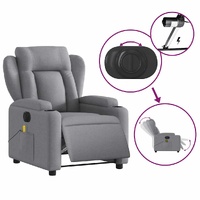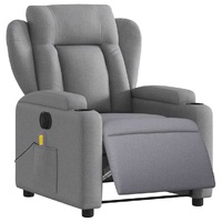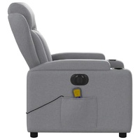 Sit back and drift away in this highly comfortable electric massage recliner chair! Electric reclining function: This recliner chair is equipped with an electric motor that helps automatically adjust the footrest and backrest to any position as per your comfort with a simple press of the button on the side of the chair. This feature allows for a maximum tilt of 135 degrees. Additionally, the backrest can go automatically back to the original place with an easy press of the button.Vibration function: The featured 6 massage points let you experience a better-targeted massage. Additionally, the included hand control allows you to pick different massage programs. The massage function is powered by the USB connector that requires a certified 5V USB power source (not included).Comfortable seat experience: The thickly padded seat, backrest, and wide armrests covered in fabric provide a cosy and warm sensation, making you feel embraced while seated. The fabric features a simple and clean look and is breathable and durable.Convenient side pocket: This armchair has a side pocket for your remote control or keeping your essential items within easy reach.Solid and stable frame: The frame made of wood and metal provides a strong structure and stability. This reclining armchair is comfortable and durable.