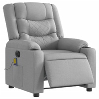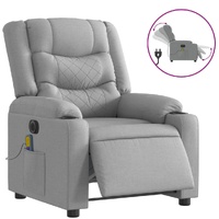 Sit back and drift away in this highly comfortable electric massage recliner chair! Electric reclining function: This recliner chair is equipped with an electric motor that helps automatically adjust the footrest and backrest to any position as per your comfort with a simple press of the button on the side of the chair. This feature allows for a maximum tilt of 135 degrees. Additionally, the backrest can go automatically back to the original place with an easy press of the button.Vibration function: The featured 6 massage points let you experience a better-targeted massage. Additionally, the included hand control allows you to pick different massage programs. The massage function is powered by the USB connector that requires a certified 5V USB power source (not included).Comfortable seat experience: The thickly padded seat, backrest, and wide armrests covered in fabric provide a cosy and warm sensation, making you feel embraced while seated. The fabric features a simple and clean look and is breathable and durable.Convenient cup holders and side pocket: This armchair has two convenient cup holders for your drinks and a side pocket for your remote control or keeping your essential items within easy reach.Solid and stable frame: The frame made of wood and metal provides a strong structure and stability. This reclining armchair is comfortable and durable.