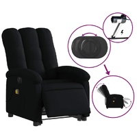 Sit back and drift away in this highly comfortable electric stand up massage recliner chair! Power lift function: This recliner chair for the elderly is equipped with an electric motor for the lifting-up function. Thanks to the function that pushes the entire chair up, you can easily stand without stressing your back and knees with a simple press of the button. Electric reclining function: This reclining chair is also equipped with an electric motor that helps automatically adjust the footrest and backrest to any position as per your comfort with a simple press of the button on the side of the chair. This feature allows for a maximum tilt of 135 degrees. Additionally, the backrest can go automatically back to the original place with an easy press of the button. Vibration function: The featured 6 massage points let you experience a better-targeted massage. Additionally, the included hand control allows you to pick different massage programs. The massage function is powered by the USB connector that requires a certified 5V USB power source (not included). Comfortable seat experience: The thickly padded seat, backrest, and wide armrests covered in fabric provide a cosy and warm sensation, making you feel embraced while seated. The fabric features a simple and clean look and is breathable and durable. Convenient side pocket: This armchair has a side pocket for your remote control or keeping your essential items within easy reach. Solid and stable frame: The frame made of wood and metal provides a strong structure and stability. This reclining armchair is comfortable and durable.