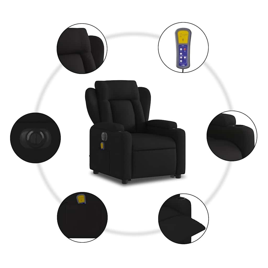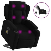 Sit back and drift away in this highly comfortable electric stand up massage recliner chair! Power lift function: This recliner chair for the elderly is equipped with an electric motor for the lifting-up function. Thanks to the function that pushes the entire chair up, you can easily stand without stressing your back and knees with a simple press of the button.Electric reclining function: This reclining chair is also equipped with an electric motor that helps automatically adjust the footrest and backrest to any position as per your comfort with a simple press of the button on the side of the chair. This feature allows for a maximum tilt of 135 degrees. Additionally, the backrest can go automatically back to the original place with an easy press of the button.Vibration function: The featured 6 massage points let you experience a better-targeted massage. Additionally, the included hand control allows you to pick different massage programs. The massage function is powered by the USB connector that requires a certified 5V USB power source (not included).Comfortable seat experience: The thickly padded seat, backrest, and wide armrests covered in fabric provide a cosy and warm sensation, making you feel embraced while seated. The fabric features a simple and clean look and is breathable and durable.Convenient side pocket: This armchair has a side pocket for your remote control or keeping your essential items within easy reach.Solid and stable frame: The frame made of wood and metal provides a strong structure and stability. This reclining armchair is comfortable and durable.