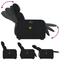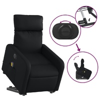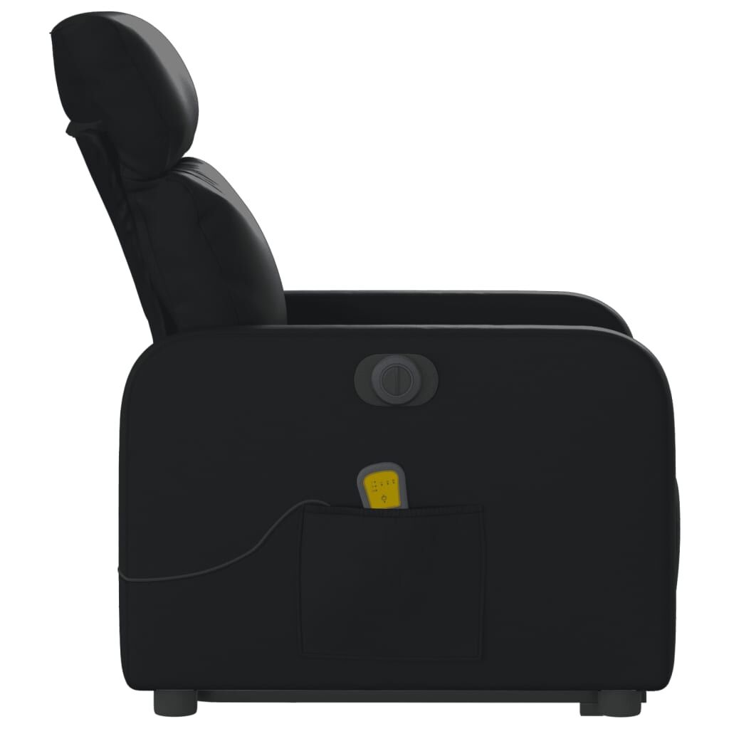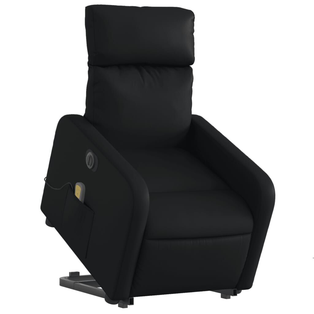 Sit back and drift away in this highly comfortable electric stand up massage recliner chair! Power lift function: This recliner chair for the elderly is equipped with an electric motor for the lifting-up function. Thanks to the function that pushes the entire chair up, you can easily stand without stressing your back and knees with a simple press of the button.Electric reclining function: This reclining chair is also equipped with an electric motor that helps automatically adjust the footrest and backrest to any position as per your comfort with a simple press of the button on the side of the chair. This feature allows for a maximum tilt of 135 degrees. Additionally, the backrest can go automatically back to the original place with an easy press of the button.Vibration function: The featured 6 massage points let you experience a better-targeted massage. Additionally, the included hand control allows you to pick different massage programs. The massage function is powered by the USB connector that requires a certified 5V USB power source (not included).Comfortable seat experience: The thickly padded seat, backrest, and wide armrests covered in faux leather provide a cosy sensation, making you feel embraced while seated. The faux leather is a highly durable material. It is resistant to stain, making it easy to clean with a damp cloth. The smooth surface also gives a luxurious look and the beauty of real leather.Convenient side pocket: This armchair has a side pocket for your remote control or keeping your essential items within easy reach.Solid and stable frame: The frame made of wood and metal provides a strong structure and stability. This reclining armchair is comfortable and durable.