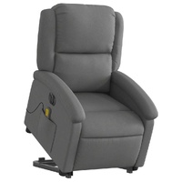 Sit back and drift away in this highly comfortable electric stand up massage recliner chair! Power lift function: This recliner chair for the elderly is equipped with an electric motor for the lifting-up function. Thanks to the function that pushes the entire chair up, you can easily stand without stressing your back and knees with a simple press of the button. Electric reclining function: This reclining chair is also equipped with an electric motor that helps automatically adjust the footrest and backrest to any position as per your comfort with a simple press of the button on the side of the chair. This feature allows for a maximum tilt of 135 degrees. Additionally, the backrest can go automatically back to the original place with an easy press of the button. Vibration function: The featured 6 massage points let you experience a better-targeted massage. Additionally, the included hand control allows you to pick different massage programs. The massage function is powered by the USB connector that requires a certified 5V USB power source (not included). Comfortable seat experience: The thickly padded seat, backrest, and wide armrests covered in fabric provide a cosy and warm sensation, making you feel embraced while seated. The fabric features a simple and clean look and is breathable and durable. Convenient side pocket: This armchair has a side pocket for your remote control or keeping your essential items within easy reach. Solid and stable frame: The frame made of wood and metal provides a strong structure and stability. This reclining armchair is comfortable and durable.